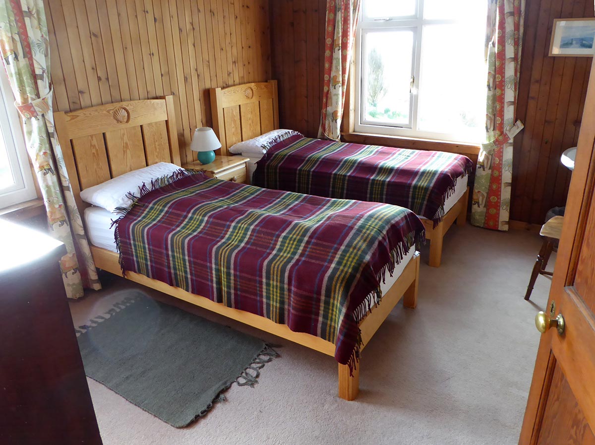 Stronvar is a wooden chalet situated in the Castle park 5 miles west of Arinagour, and facing south on the lovely sandy bay of Breachacha.