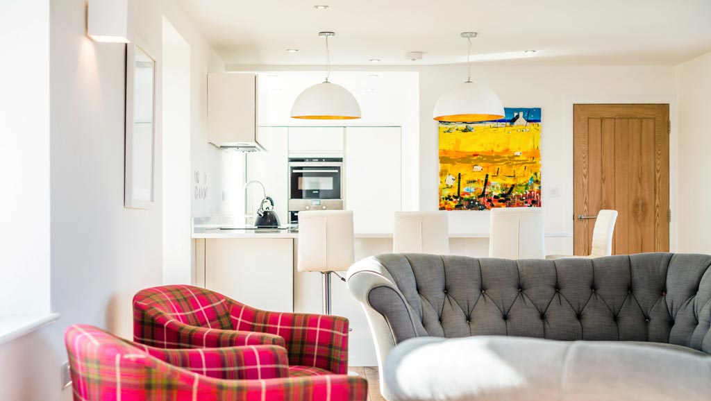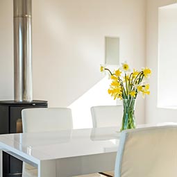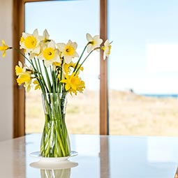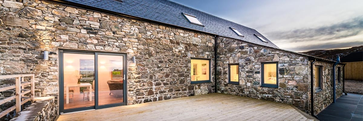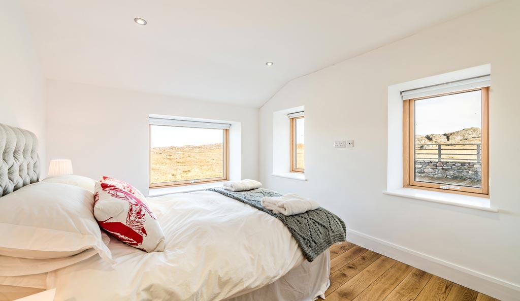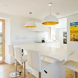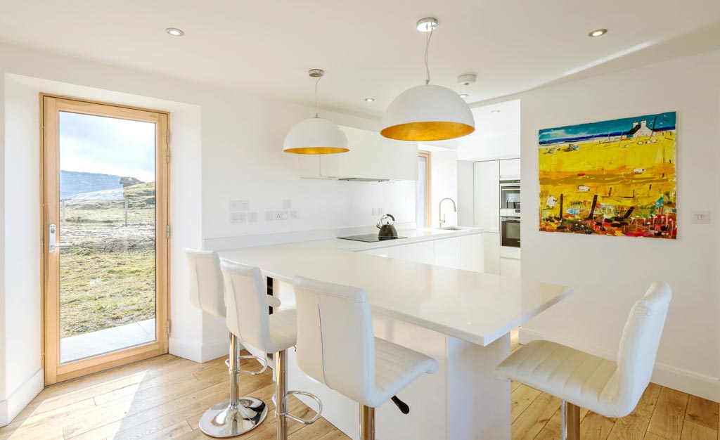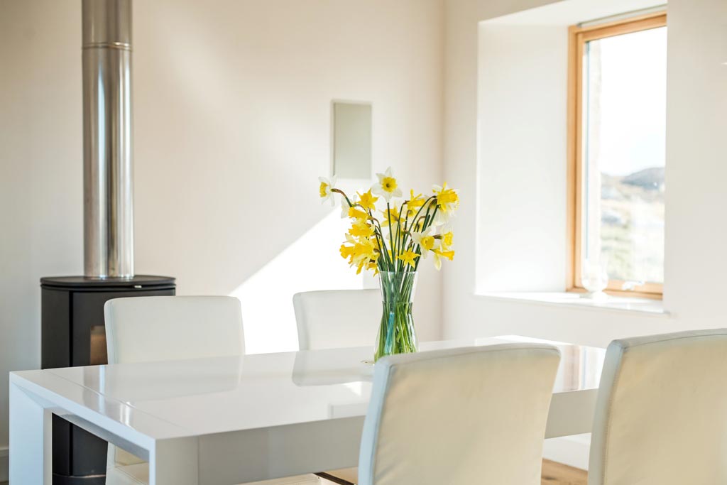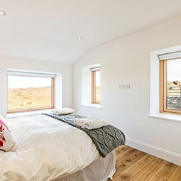 White House Lodge is a conversion of a derelict farm worker’s cottage to an eco friendly, high spec, four bedroom house, sleeping eight, suitable for summer holidays and winter retreats. The stylish accommodation is spread over two floors, and is furnished with contemporary furniture. There is an expansive kitchen lounge diner with sea views, feature bathrooms and a well equipped utility room. There is also a large shed for guest’s use. Since completion White House Lodge has been featured in a number of newspapers and magazines, and in 2013 won the Daily Telegraph Homebuilding and Renovation Award for Best Conversion.
